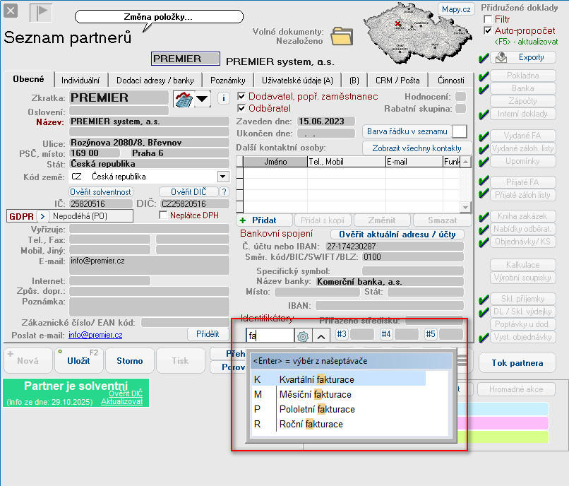 - Rozšířené možnosti štítků v adresáři partnerů – štítky mají nové praktické funkce.
