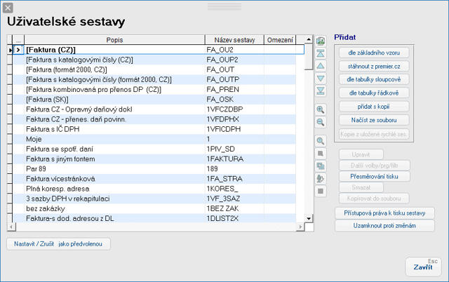 - Sestavy, pohledy – do unigridu byly předělány i seznamy tiskových sestav a pohledů.